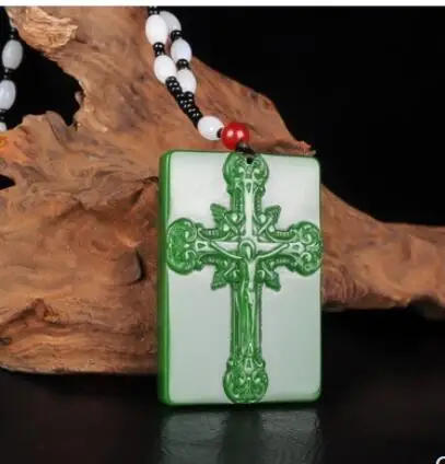 Best Natural hetian GEM cross pendant spinach green Jesus cross zodiac rooster spinach green rooster rea