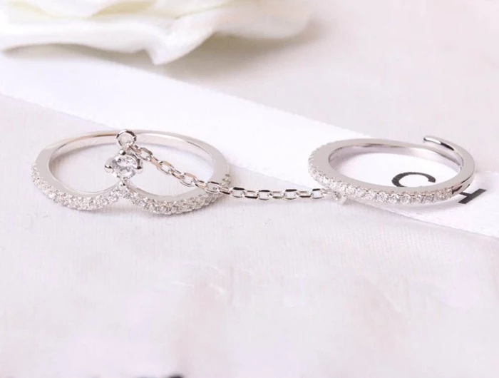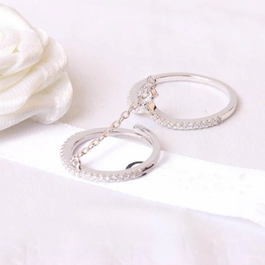 Designer Fashion 925 Sterling Silver Jewelry 3A Cubic Zirconia Party Link 2Pcs Ring