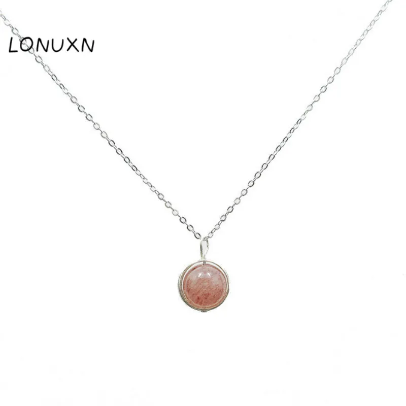 Best Quality high quality 925 Sterling silver Fashion Choker Necklaces Jewelry for Women natural Strawberry Crys