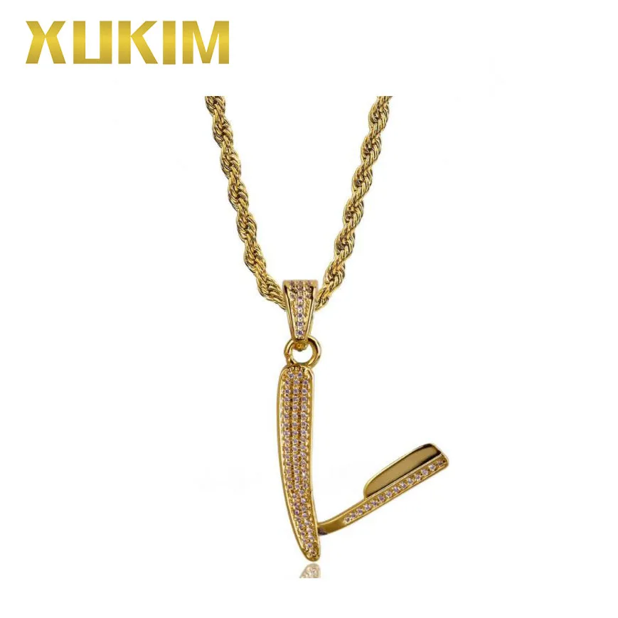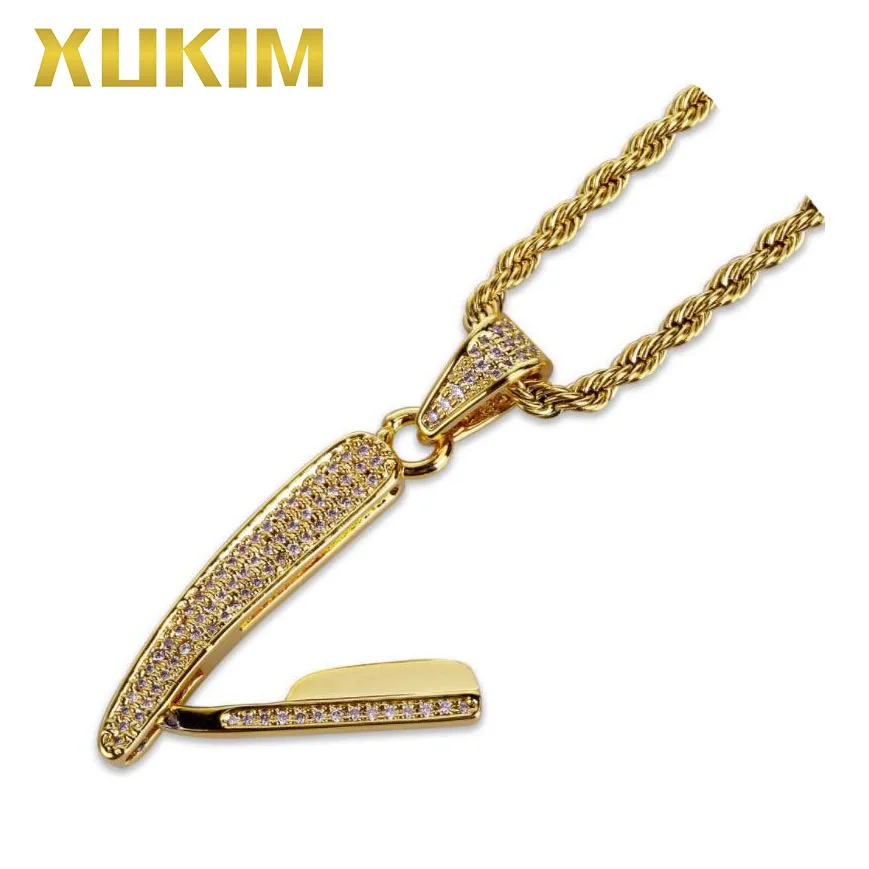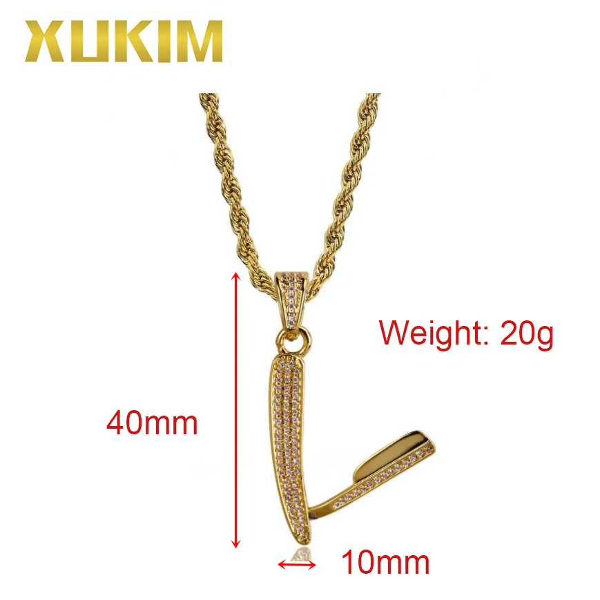 HIGH QUALITY IOP002 Xukim Jewelry Custom Knif Hip Hop Iced Out Gold Pendant Necklace