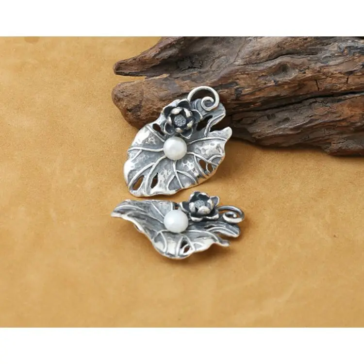 Hot Sale Vintage China Style Silver 925 Lotus Leaf Natural Pearl Pendant For Necklace Women Handmade 925 Ste