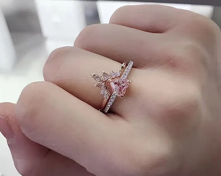 2019 Silver V Type Crystal Twinset Trendy Rings Set For Women Jewelry Vintage Sale