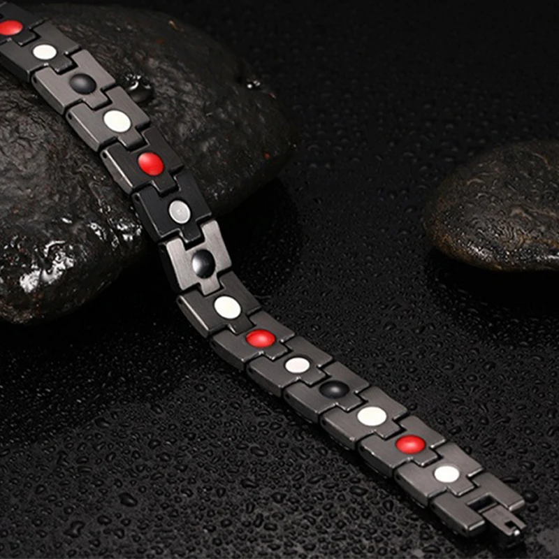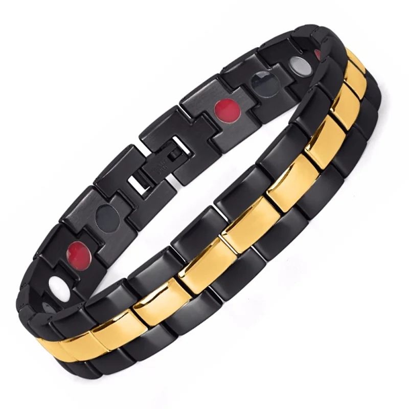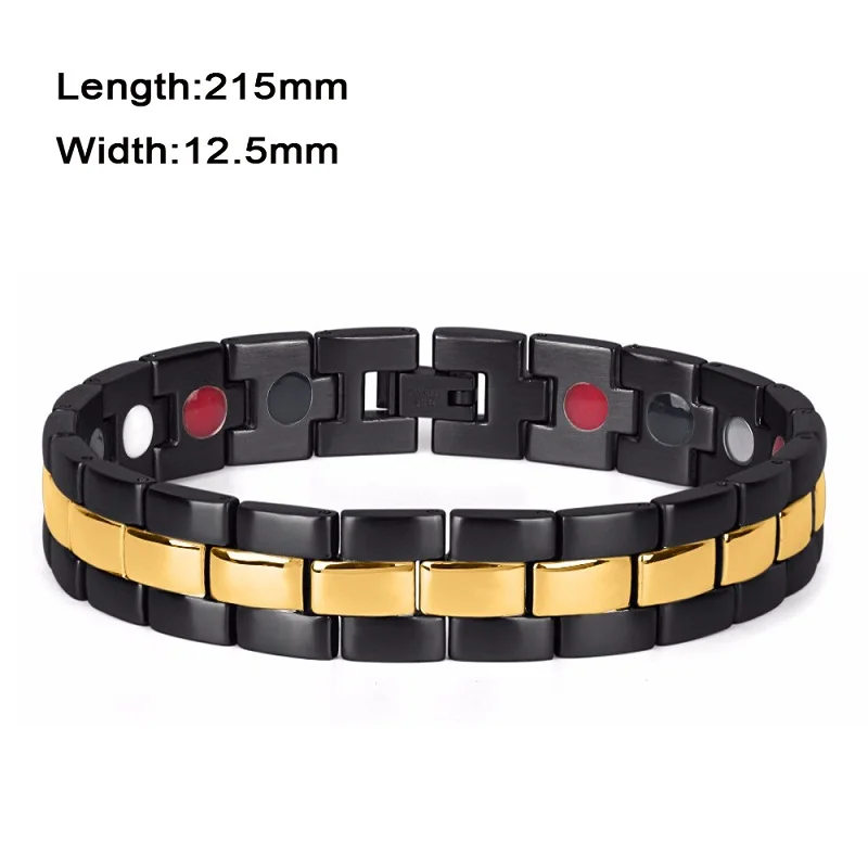 Best Brand Design Health Energy Bracelets&Bangles Men Black Plated IP Gold Bracelet Bio Magnetic Stainle