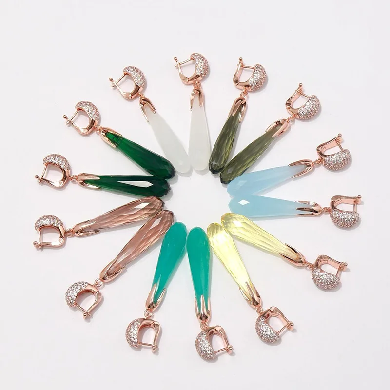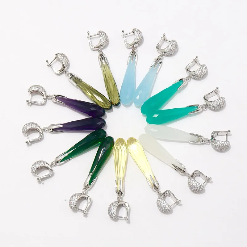 Best Seller Gorgeous retro style long crystal water drop sparkling CZ earring love earings fashion jewelry earr
