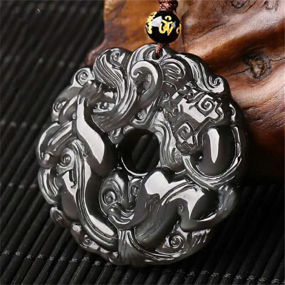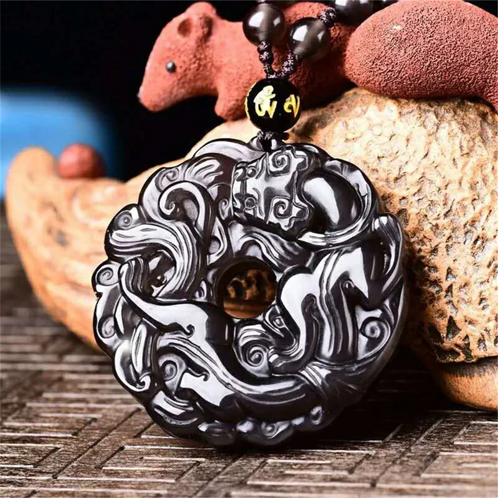 BEST SELLER Natural Ice Color Obsidian Pendant Fashion Jewelry Carved Safety Buckle PiXiu Amulet Necklace Bless