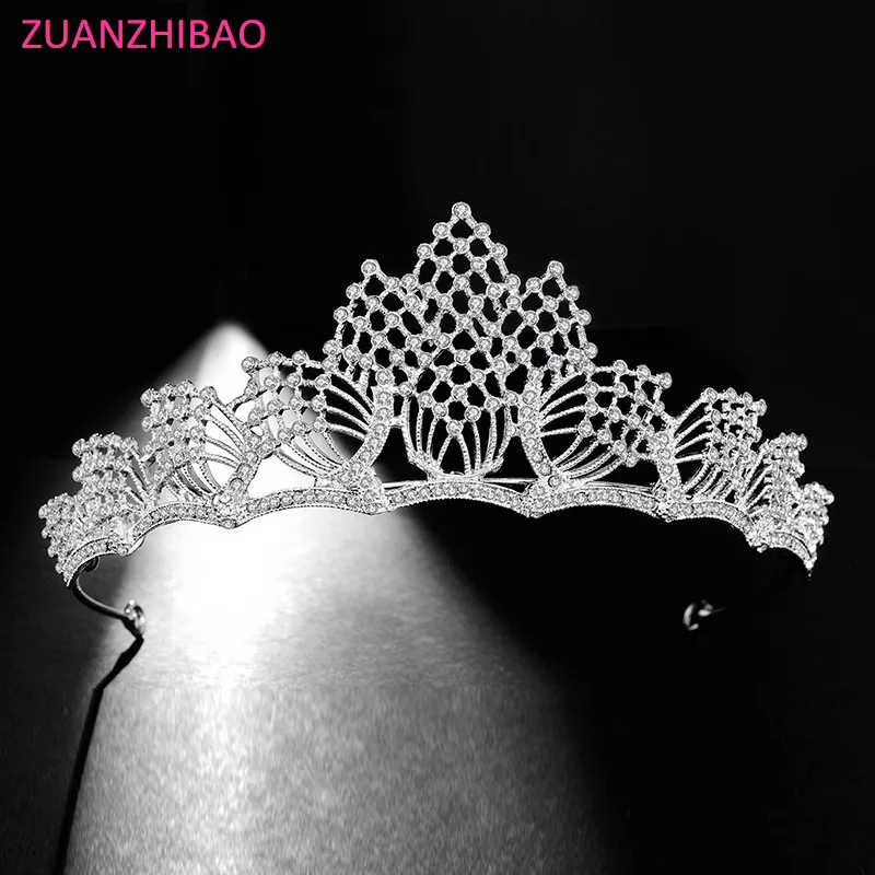 Best Seller ZUANZHIBAO Fashion Tiara Wedding Bridal Hairbands Crown Silver Crystal Rhinestone Tiaras Hair Acces