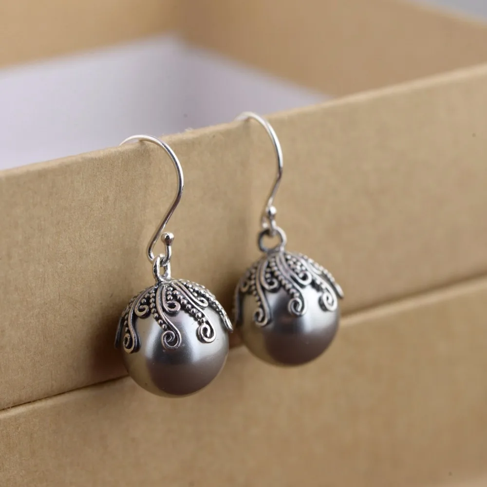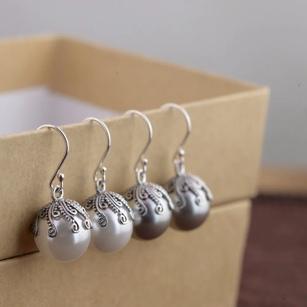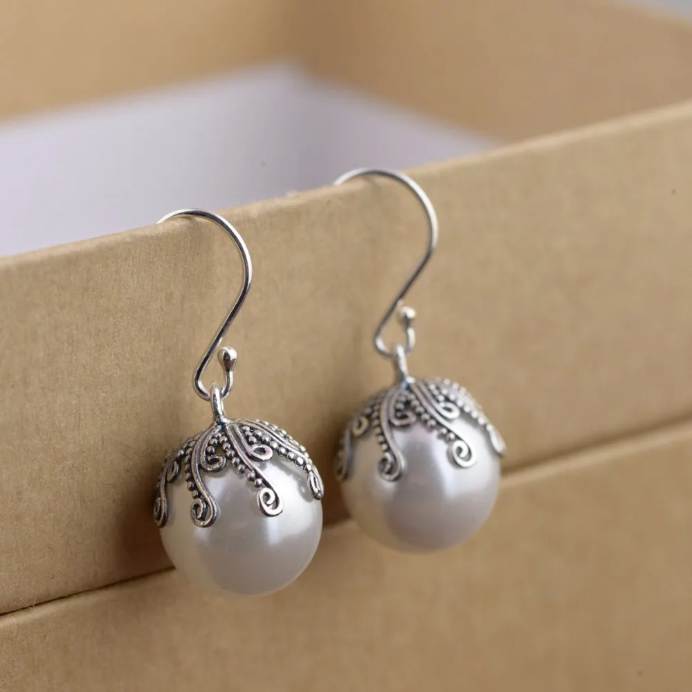 HIGH QUALITY BESTLYBUY Genuine 925 Sterling Silver Elegant Round Pure Love Pearl Drop Earrings for Women Fine Je