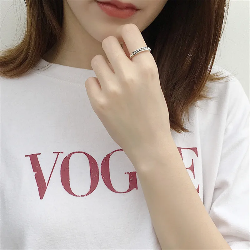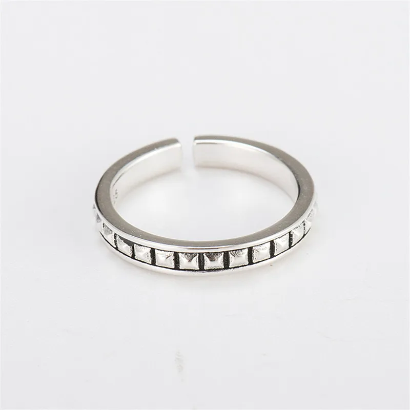 MOLIAM Authentic 925 Sterling Silver Square Open Rings for Women Vintage Geometric Adjustable Ring