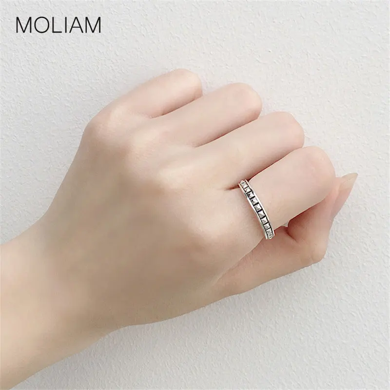 HIGH QUALITY MOLIAM Authentic 925 Sterling Silver Square Open Rings for Women Vintage Geometric Adjustable Ring