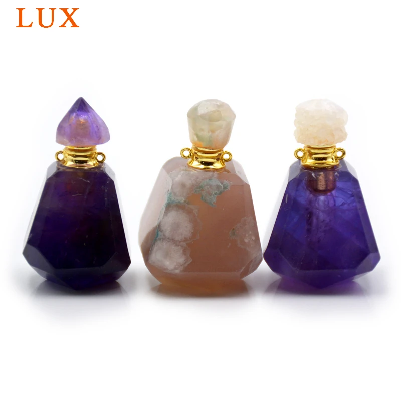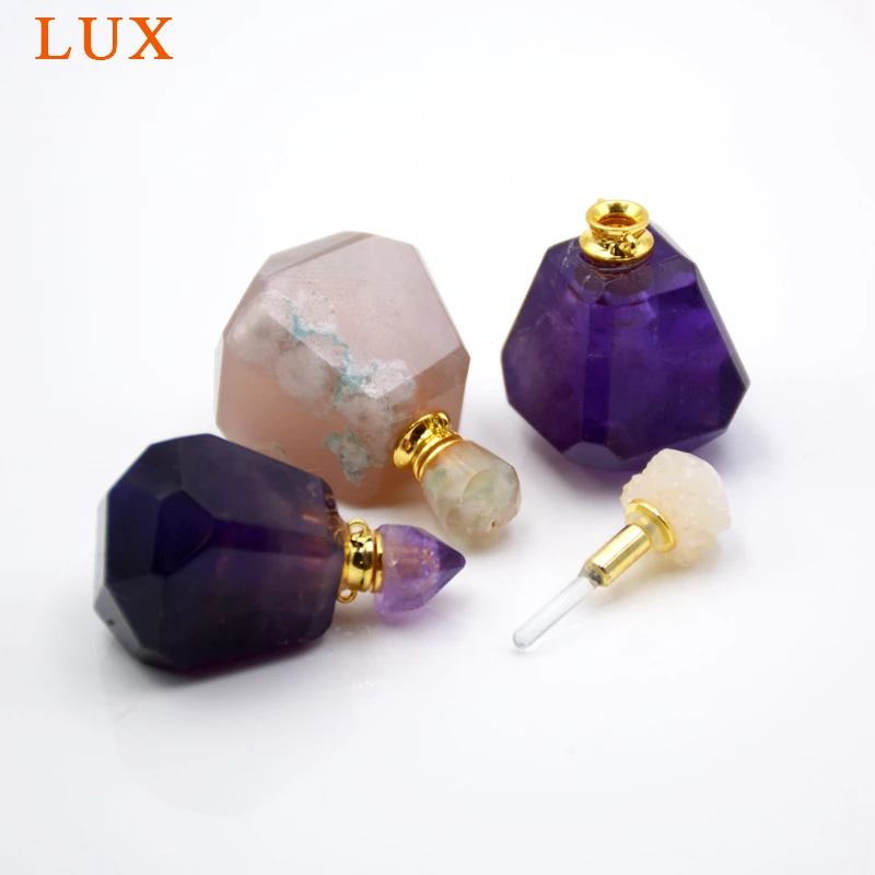 Best Natural gems faceted stone perfume essential oils bottle amethysts pendant with stick for necklace