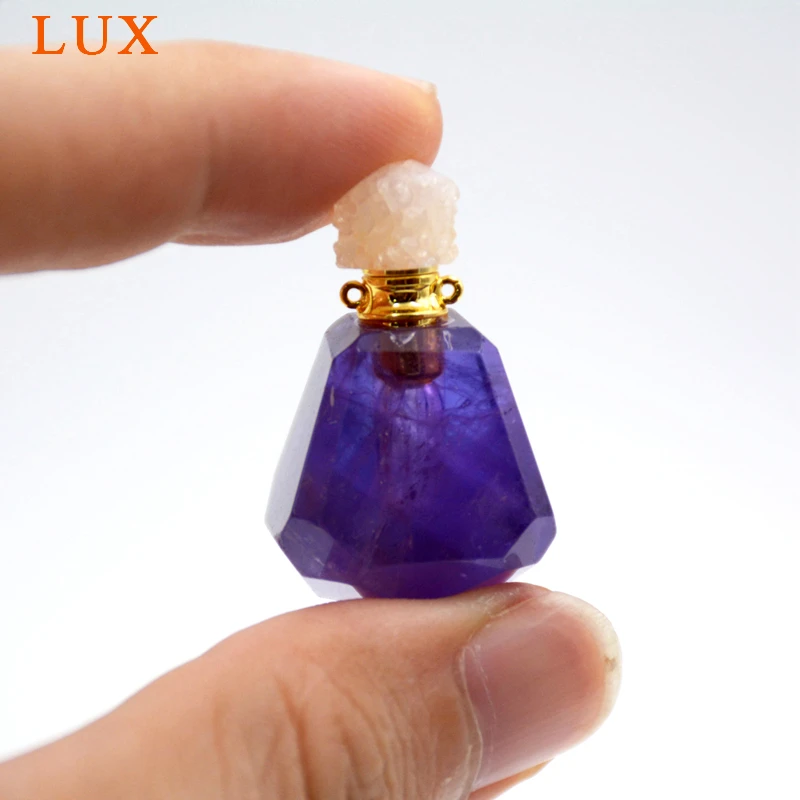 HIGH QUALITY Natural gems faceted stone perfume essential oils bottle amethysts pendant with stick for necklace