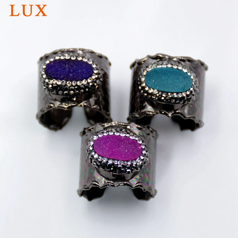 HOT Sale 5PCS Natural druzy marquise shape agates drusy jewelry pave rhinestone jewelry black band ring fash