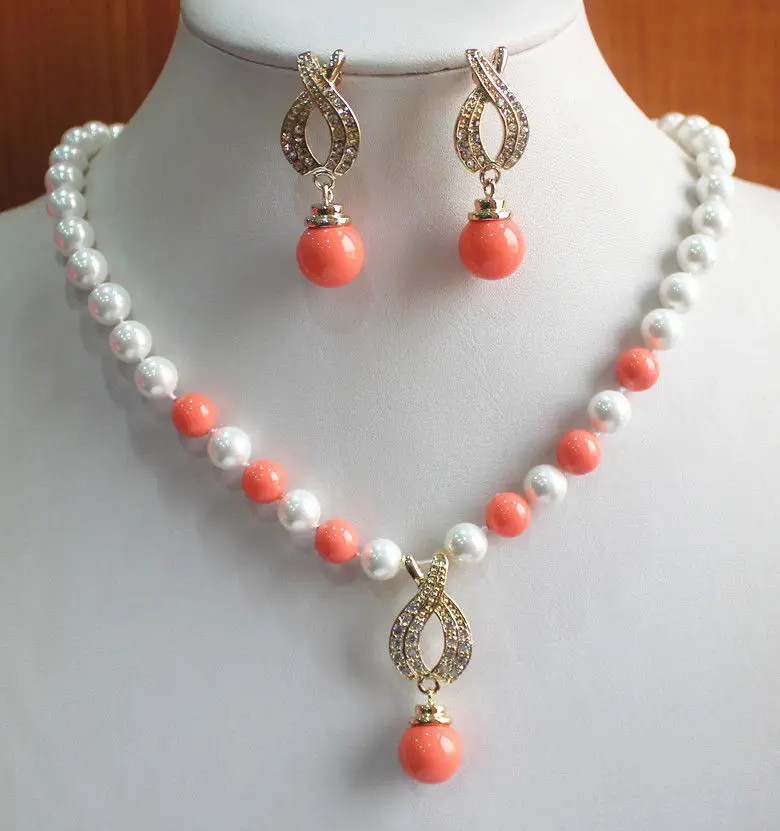 Best Quality Freshwater Pearls Beautful New jewelry choke Design 8mm Mixed Color Pearl Necklace+14mm Earring Pen