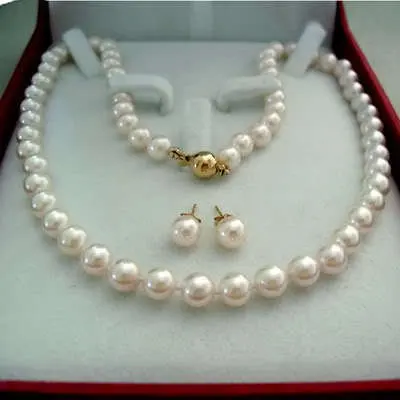 Best Seller Charming 8-9MM White Akoya Pearl Necklace Earring Set Wonderful Nobility Fine Wedding Jewelry Lucky
