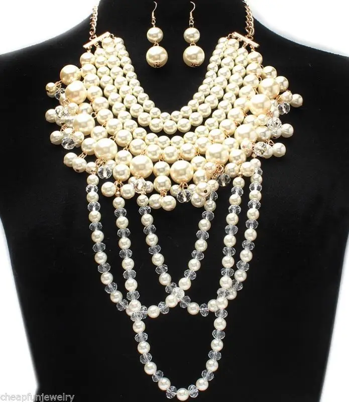 REVIEW TOP SELLER FREE SHIPPING NEW Imtation Pearls Jewelry Multi-layers Necklace&Pendants with Pearls Earrings 2 Col