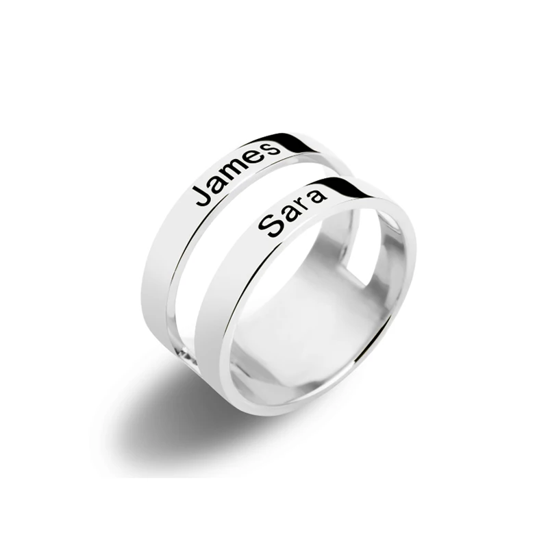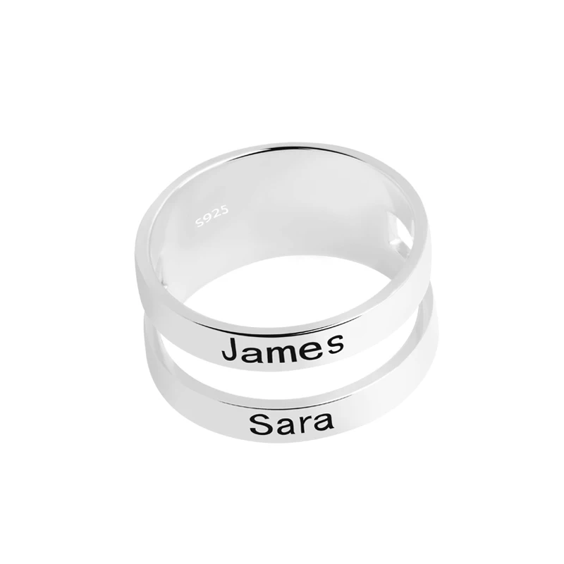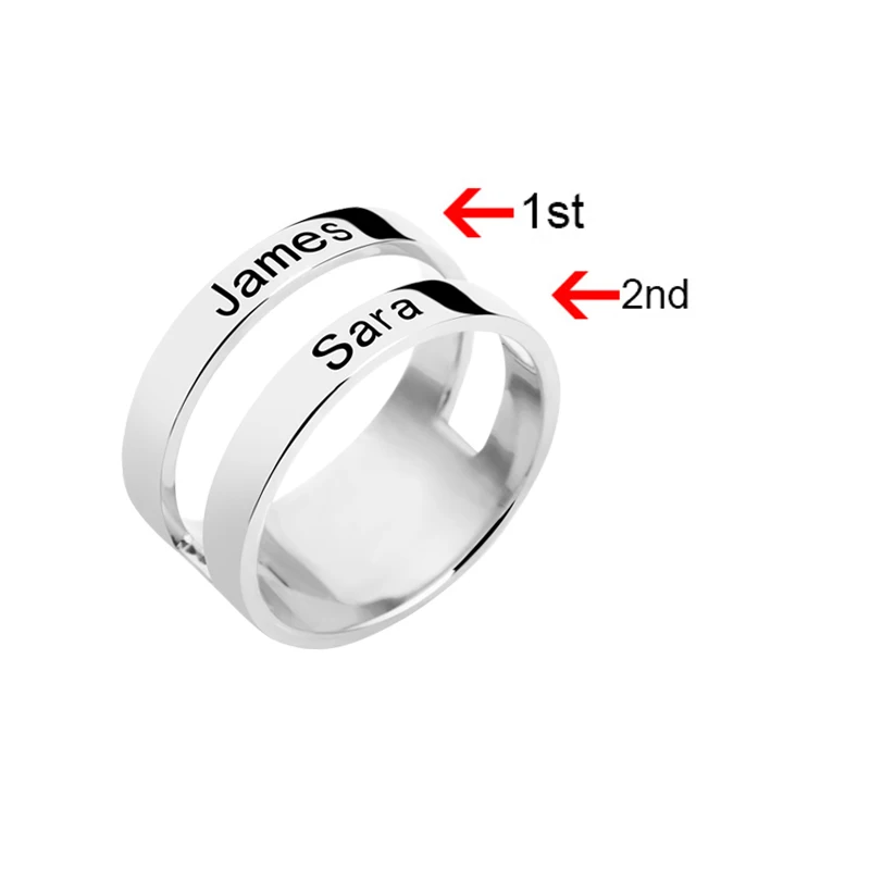Wholesale Engraved Two Names Ring Sterling Silver Couples Names Ring Fashion Jewelry