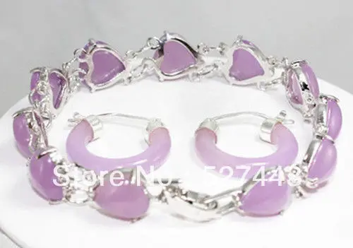 Wholesale Purple gem stone silver jewelery Bracelet Round hoop earring earrings -silver-jewelry -si