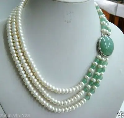 Charming Women's Jewelry 3 row white freshwater pearl jades necklace